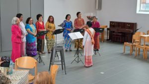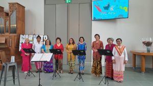 Zondag 8 oktober 2023. Een lunch in het teken van Myanmar. Een project van de Stichting Leprazending Apeldoorn. Voorafgaand aan de lunch werd verteld over lepra en het aanbieden van protheses en zorg. Het is een project dat vanuit de diaconie wordt ondersteund. Als gemeente collecteren we voor zo veel mogelijk protheses. De dag kreeg een feestelijk tintje door het optreden van het koor GKIN o.l.v. Shelly Goes.