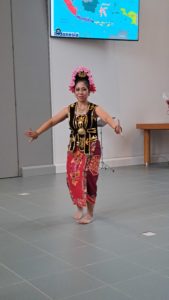Drie danseressen voerden Indonesische dansen uit en lieten tot slot de bezoekers meedansen. Een kleine impressie: