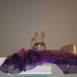 Basisschikking: paarse doek, paars paneel en witte schoenen. De kleur wit staat voor het licht dat, van het steeds weer opnieuw kunnen beginnen.