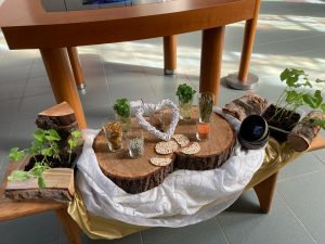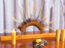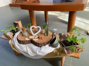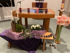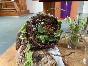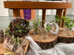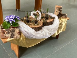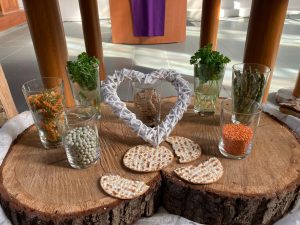 In de veertigdagentijd werken we met kernwoorden uit het evangelie van Lucas 4. Centraal staan deze tijd de aarde en het kruis. Iedere week een ander kernwoord met bijpassend element.