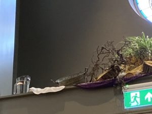 • Er is een derde paar schoenen bijgezet. Er is weer beweging, zoeken wij het aangezicht van God, staan wij open voor verandering? Staan wij open voor de ander die ons nodig heeft?